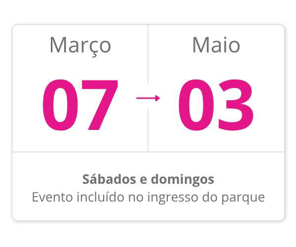 Junte-se a nós para dar as boas-vindas ao verão americano no melhor estilo Aquatica, com música, entretenimento e surpresas em cada esquina. O melhor de tudo: os atrativos do evento já estão incluídos no ingresso do parque! Então, pegue seus chinelos e prepare-se para curtir dias inesquecíveis!