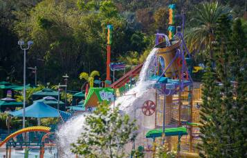 Divirta-se nesta área de diversão aquática pensada para as famílias, repleta de palmeiras, baldes, jatos de água, bolhas e muito mais. As crianças também podem escorregar pelo Tamariki Twirl, um toboágua projetado especialmente para os pequenos aventureiros!