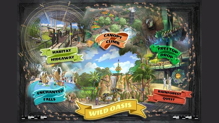 O Busch Gardens convida exploradores de todas as idades para o novo "Wild Oasis", uma área interativa, projetada para entreter, educar e inspirar. Os visitantes serão imersos nos sons e cores da floresta tropical e participarão de diferentes atividades, incluindo uma torre de queda livre com efeitos especiais, área de escalada, caça ao tesouro, habitat multi-espécies e muito mais.