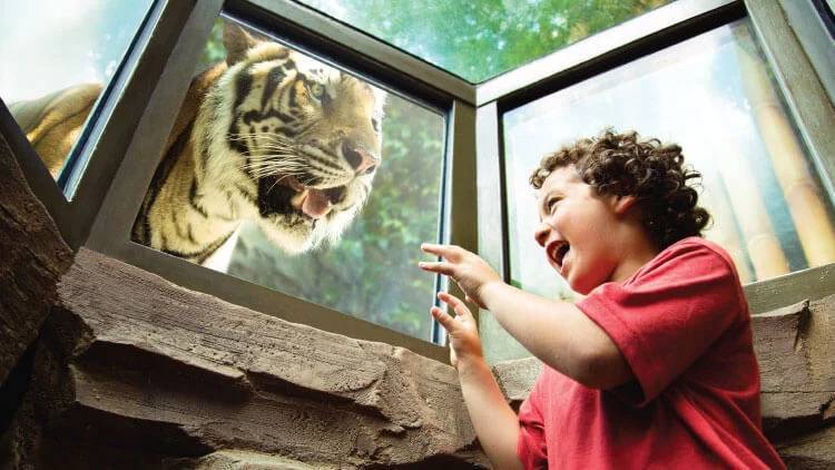 Durante essa experiência, você verá de perto os métodos de treinamento dos cuidadores dos tigres na área Jungala e aprenderá como o Busch Gardens contribui para a proteção desses animais na natureza.